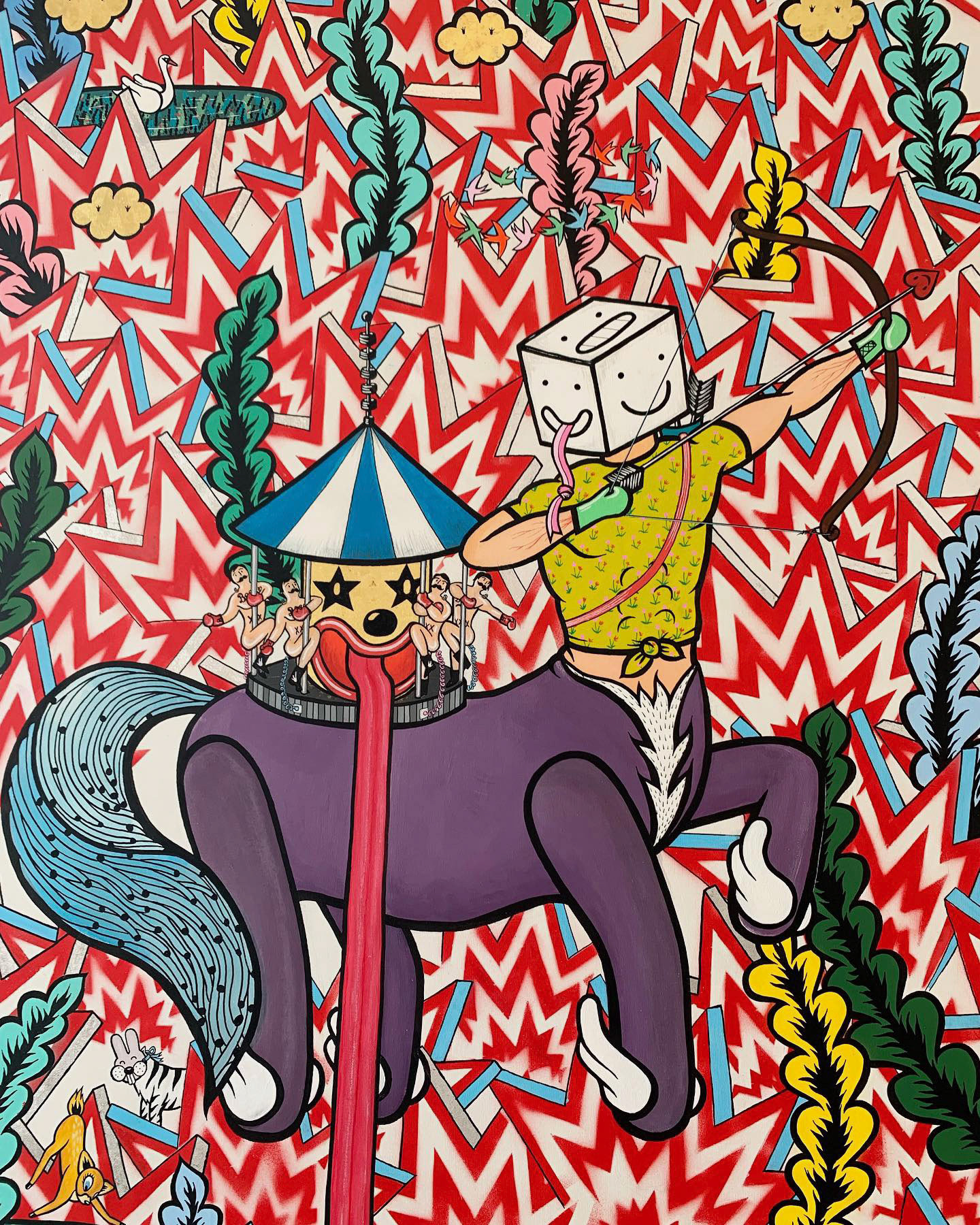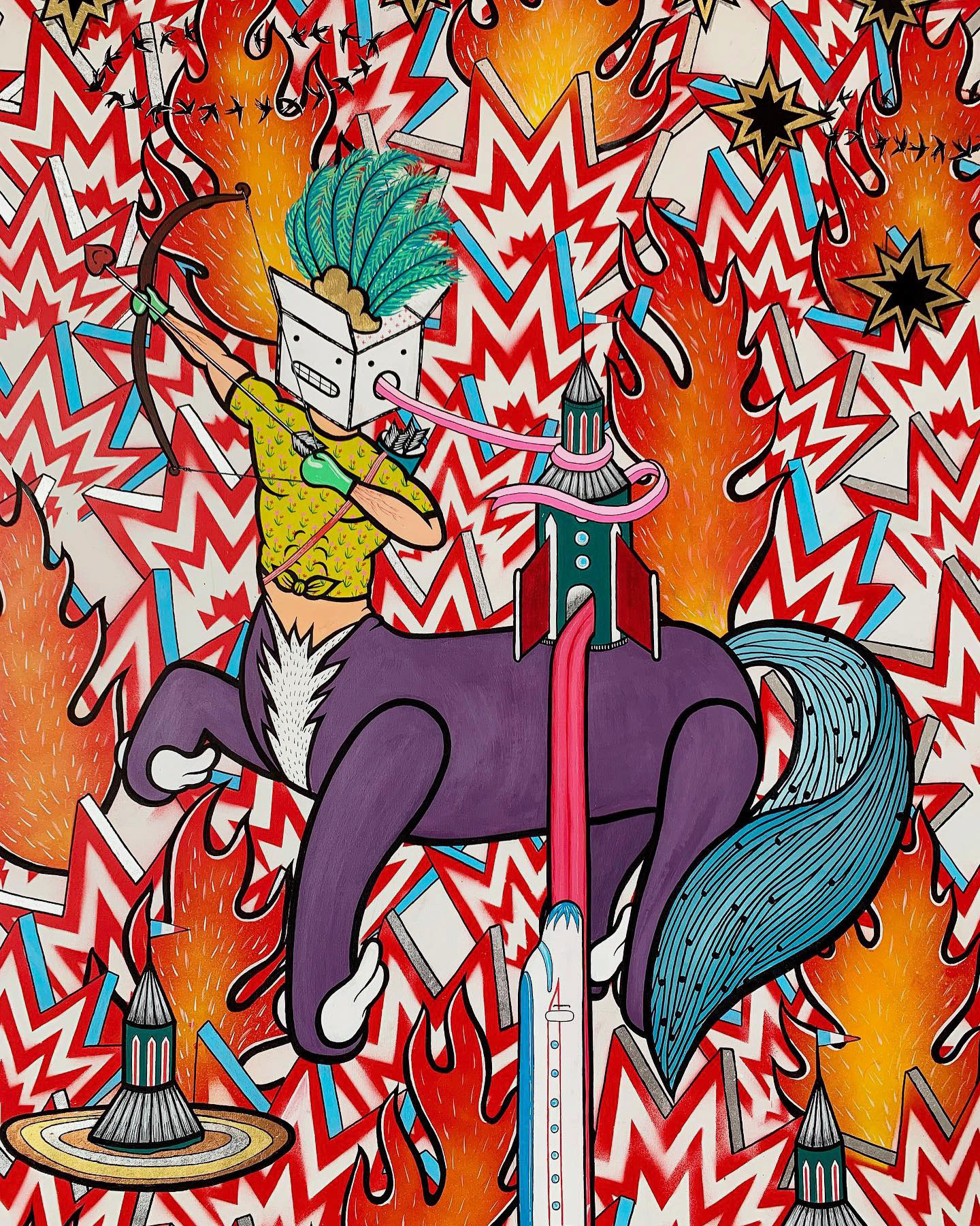 Acrylique, aérosol, feuilld'or et d'aluminium sur toile