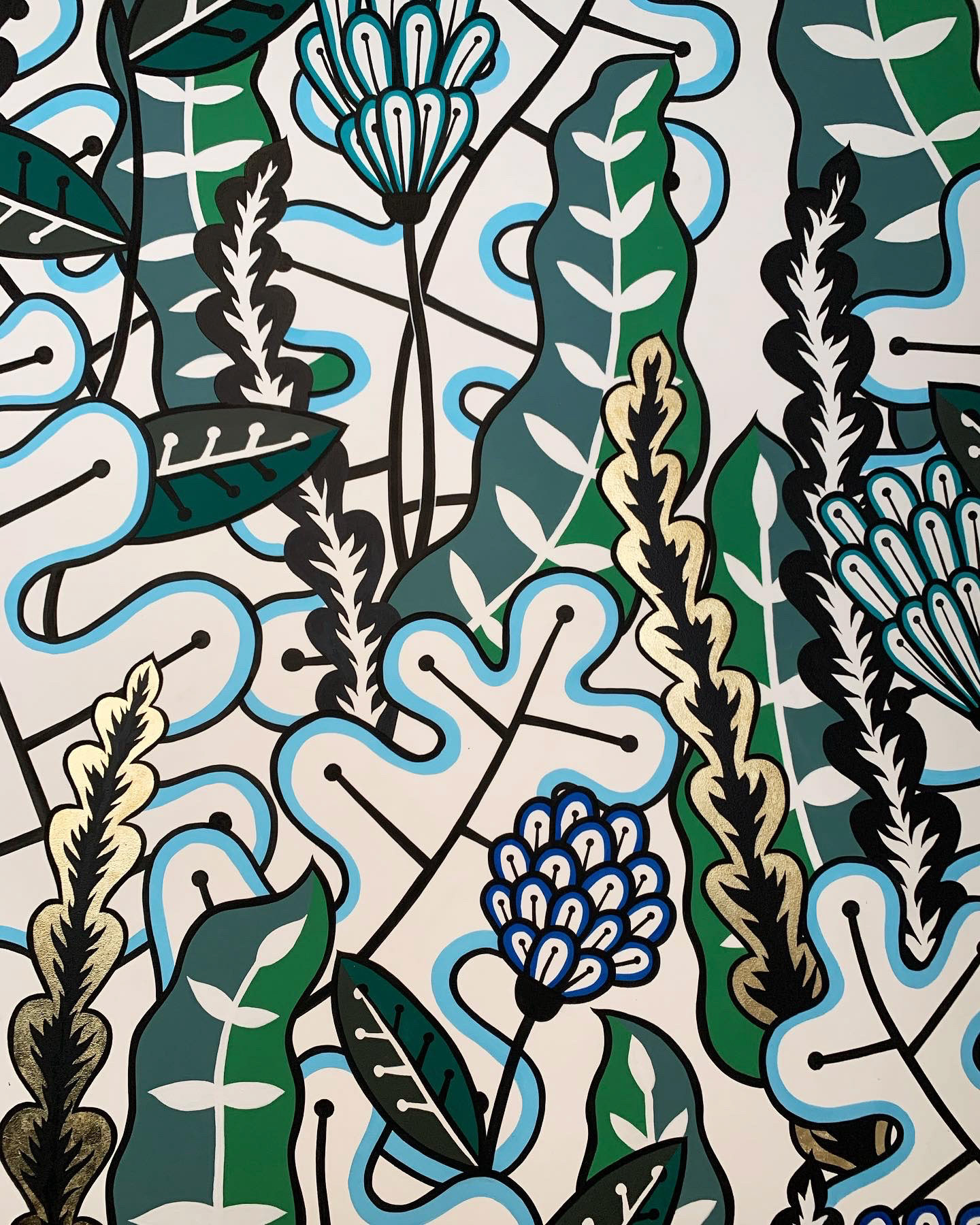 Acrylique et feuilles d'or.